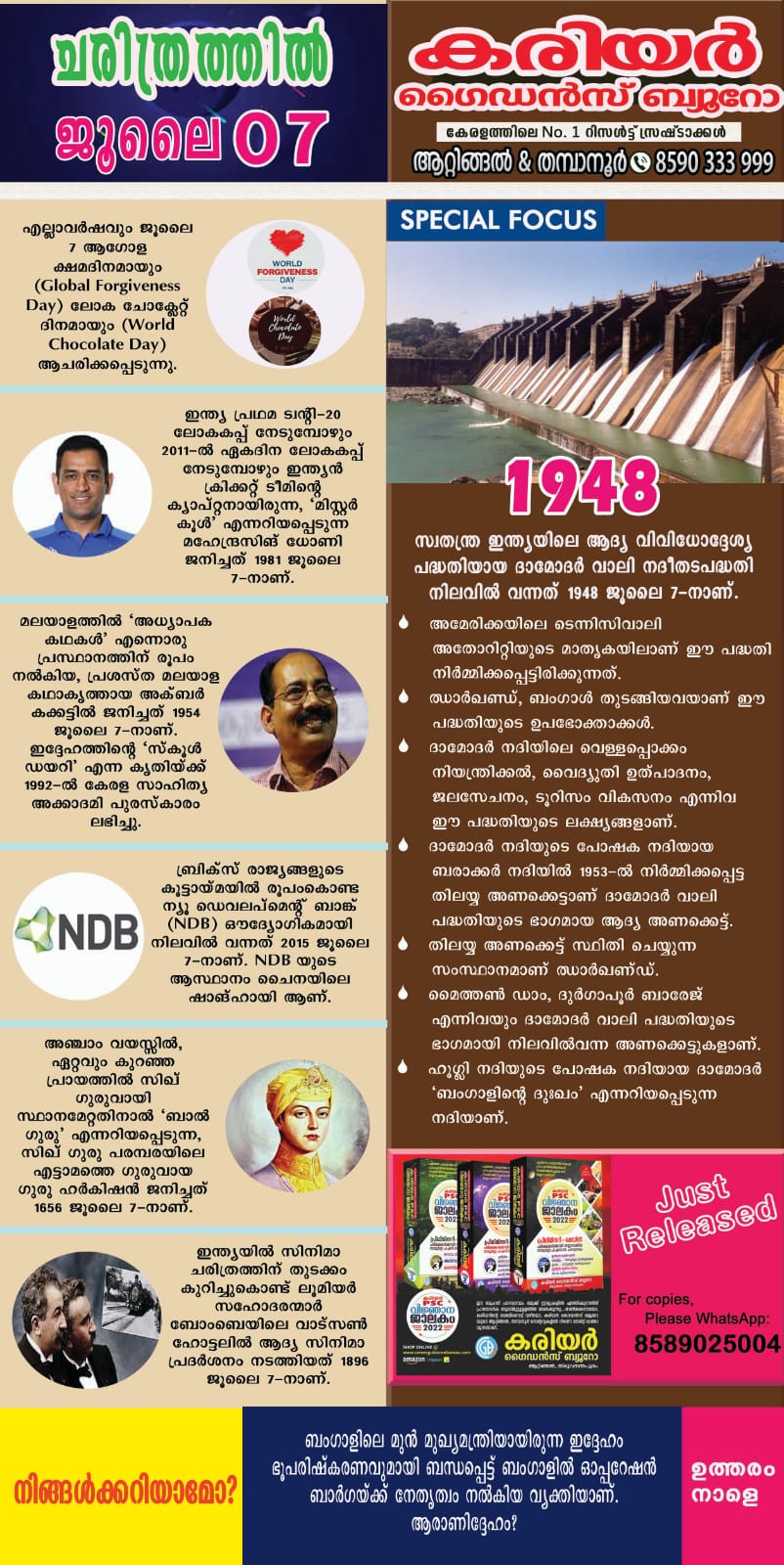 à´šà´°à´¿à´¤àµà´°à´¤àµà´¤à´¿àµ½ ഇനàµà´¨àµ (JULY 7)