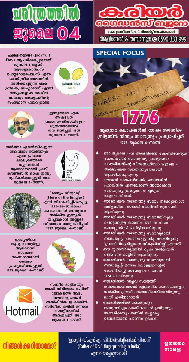 à´šà´°à´¿à´¤àµà´°à´¤àµà´¤à´¿àµ½ ഇനàµà´¨àµ (JULY 4)