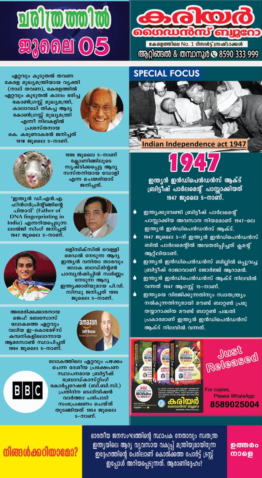 à´šà´°à´¿à´¤àµà´°à´¤àµà´¤à´¿àµ½ ഇനàµà´¨àµ (JULY 5)