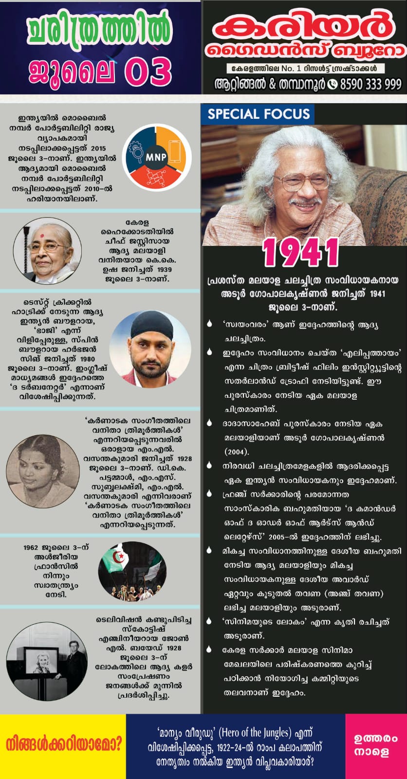 à´šà´°à´¿à´¤àµà´°à´¤àµà´¤à´¿àµ½ ഇനàµà´¨àµ (JULY 3)