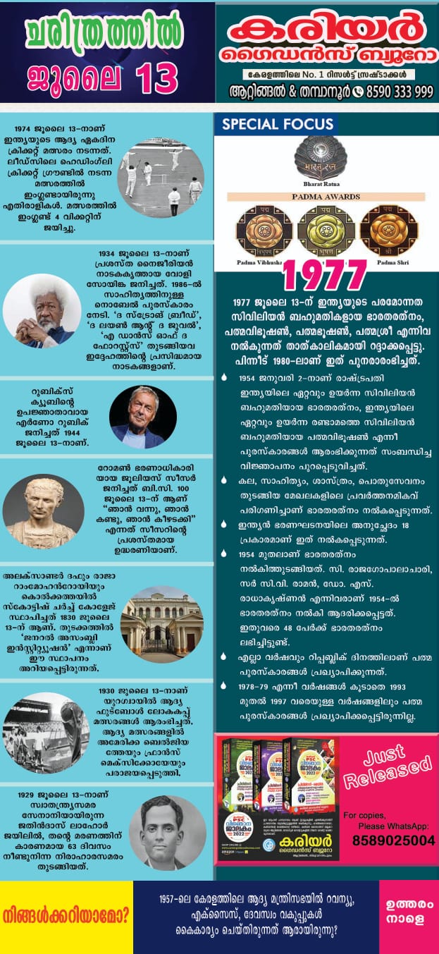 à´šà´°à´¿à´¤àµà´°à´¤àµà´¤à´¿àµ½ ഇനàµà´¨àµ(JULY 13)