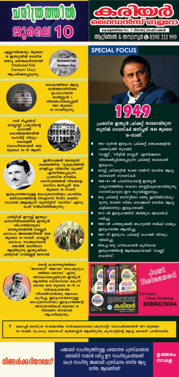 à´šà´°à´¿à´¤àµà´°à´¤àµà´¤à´¿àµ½ ഇനàµà´¨àµ (JULY 10)