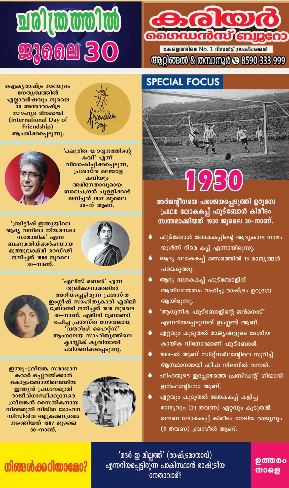 à´šà´°à´¿à´¤àµà´°à´¤àµà´¤à´¿àµ½ ഇനàµà´¨àµ (JULY 30)