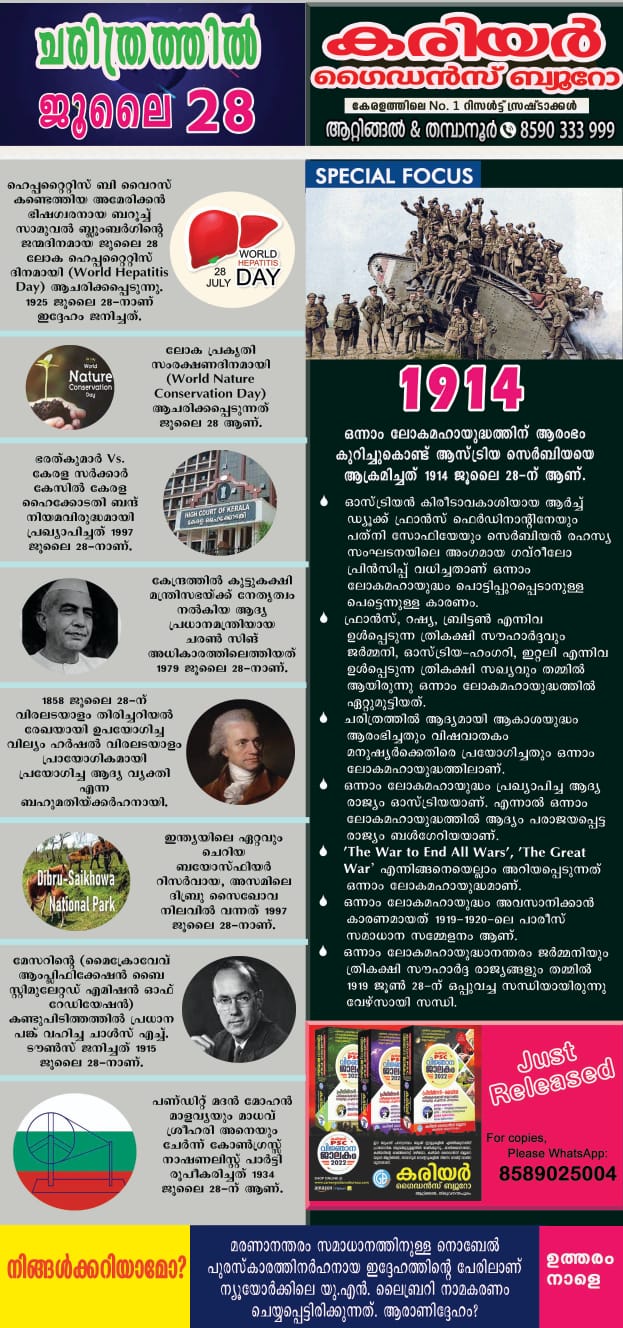à´šà´°à´¿à´¤àµà´°à´¤àµà´¤à´¿àµ½ ഇനàµà´¨àµ (JULY 28)