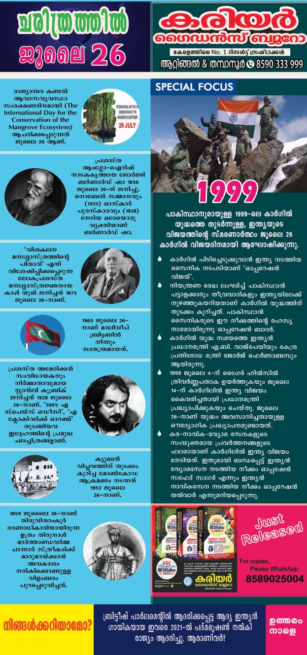 à´šà´°à´¿à´¤àµà´°à´¤àµà´¤à´¿àµ½ ഇനàµà´¨àµ (JULY 26)