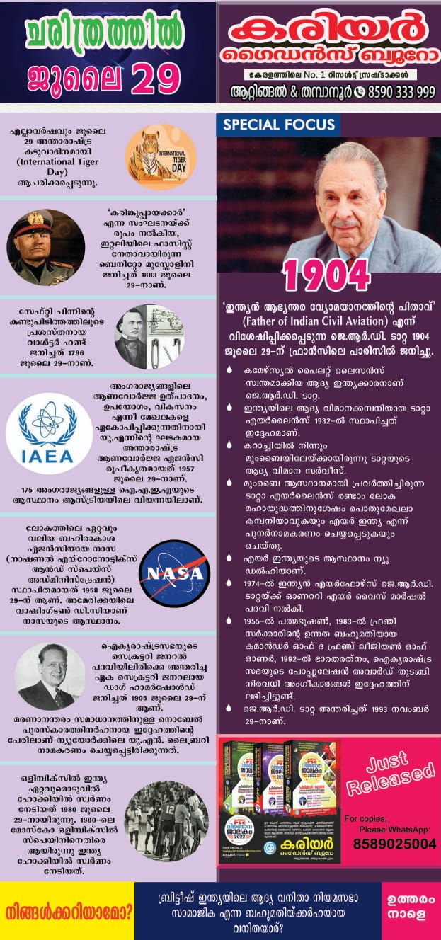 à´šà´°à´¿à´¤àµà´°à´¤àµà´¤à´¿àµ½ ഇനàµà´¨àµ (JULY 29)