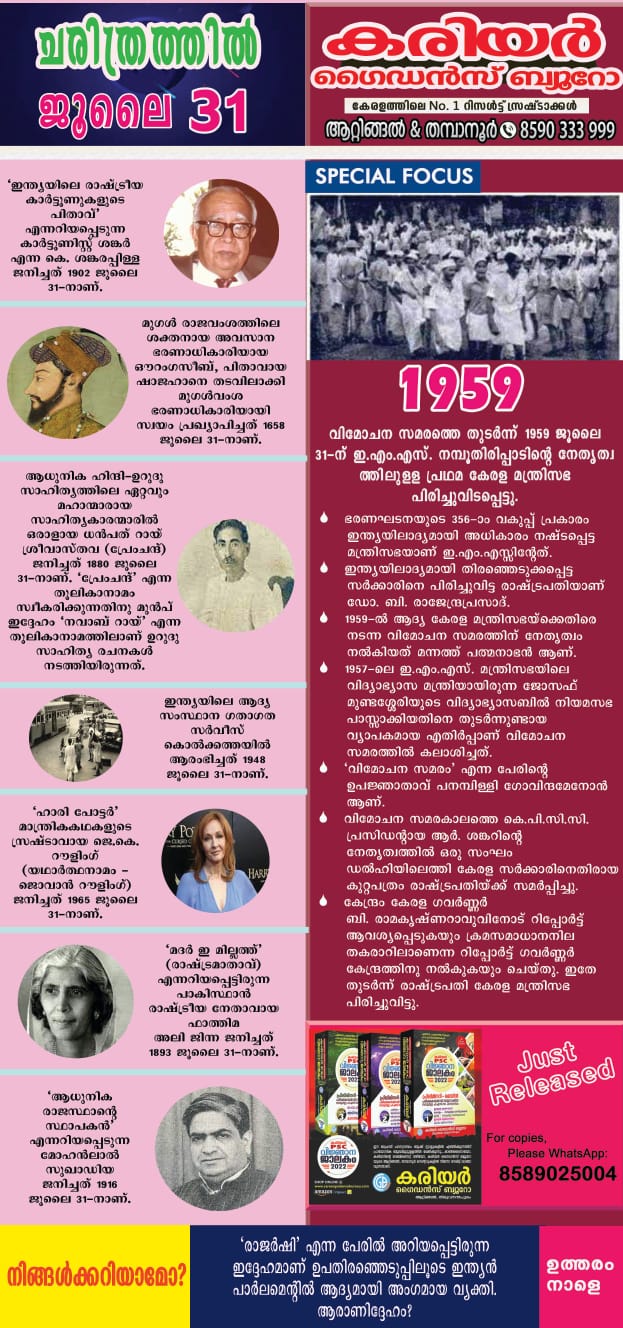 à´šà´°à´¿à´¤àµà´°à´¤àµà´¤à´¿àµ½ ഇനàµà´¨àµ (JULY 31)